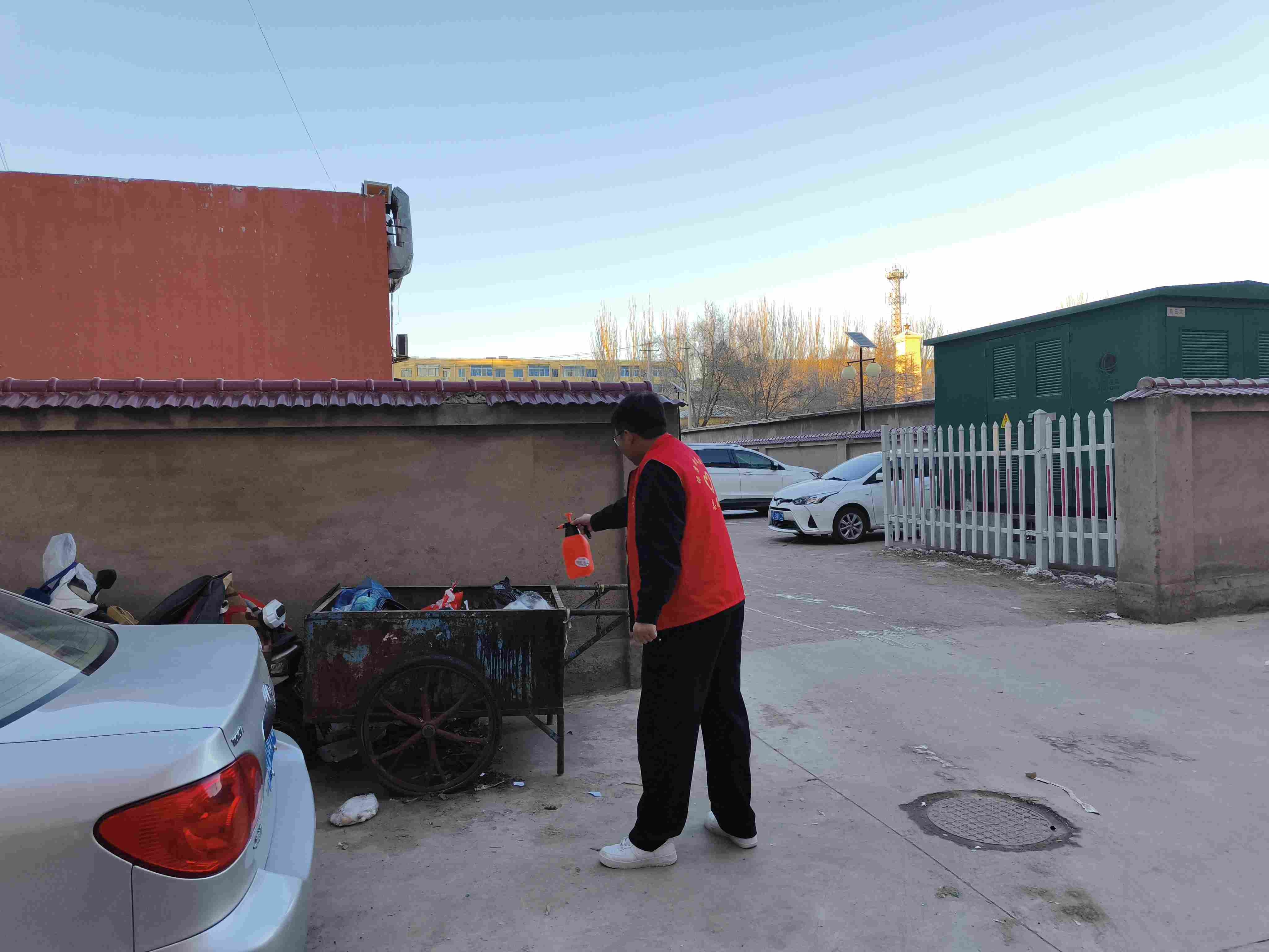 11月18日,在社区党组织的统一部署下,社区工作者与党员志愿者们亮身份、作表率,身着统一志愿者服装,携带消杀器械与宣传材料,深入居民区开展环境卫生整治与健康知识宣传。活动中,党员们重点对楼道、垃圾收集点、卫生死角等公共区域进行了彻底消杀,以实际行动阻断病毒传播途径,彰显党员的责任担当。随后,在居民区、广场等人流较多区域,党员志愿者主动向居民发放流感预防、健康生活指南等宣传资料,面对面讲解防护知识,倡导“每个人是自己健康第一责任人”理念,引导群众养成文明卫生习惯,提升自我防护能力。