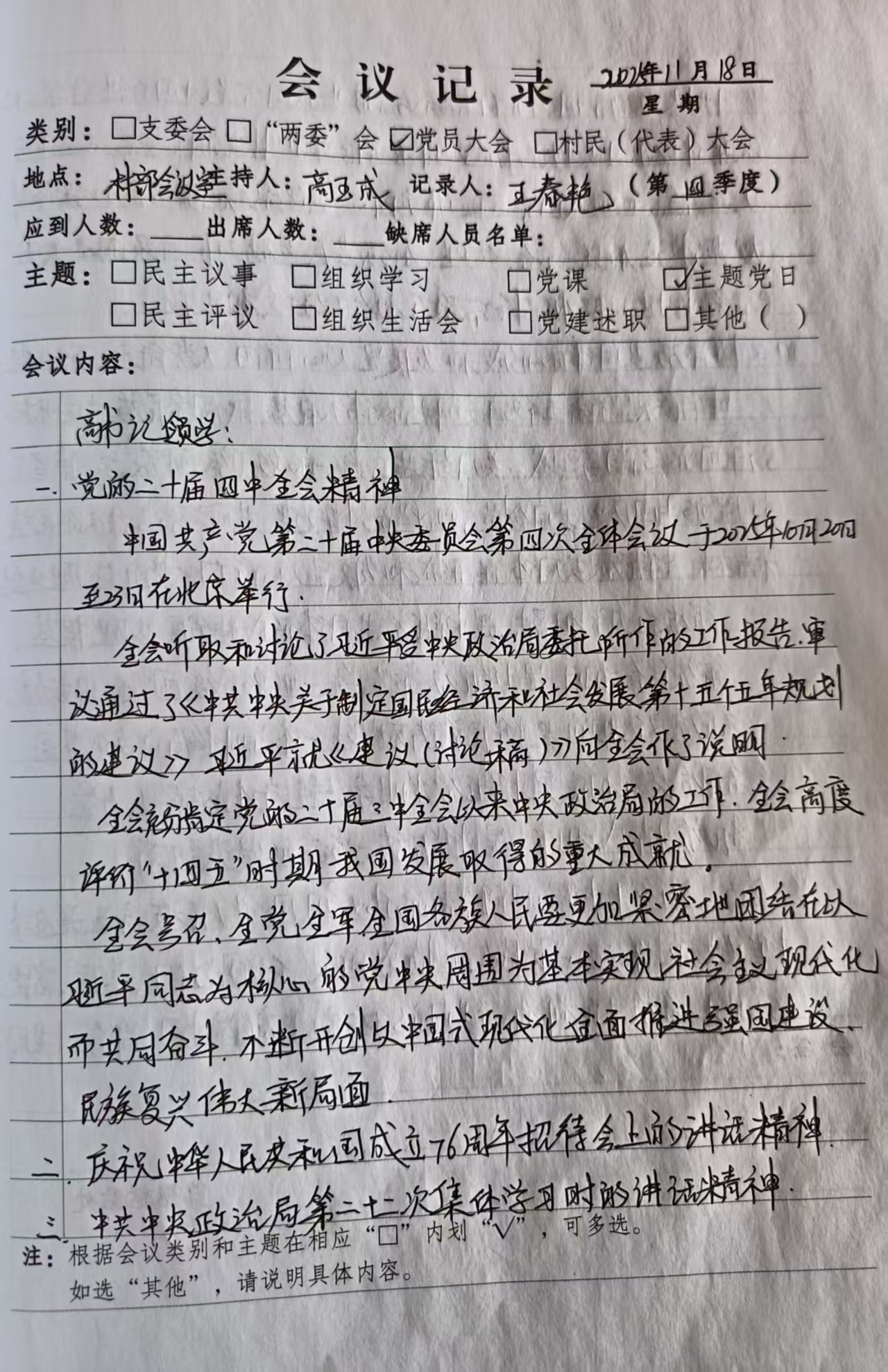2025年11月18日主题党日组织党员集中学习