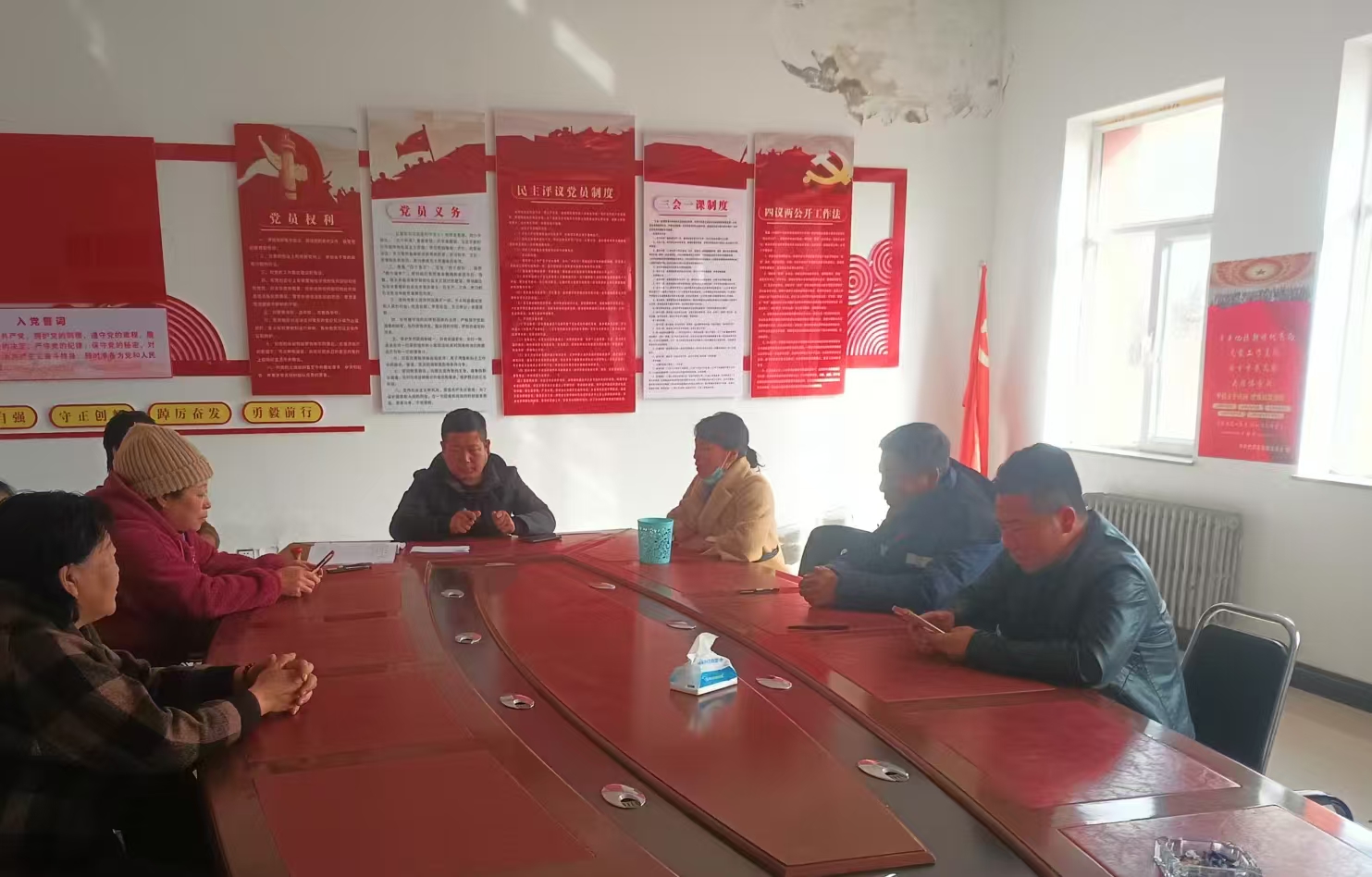2025年12月18日,哈日乌苏嘎查党支部召开12月主题党日活动,参会党员7人,党支部书记吴文峰主持集体学习会议,集中学习:1.《习近平谈治国理政》第五卷2.《中国共产党思想政治工作条例》,与会党员进行讨论发言。
