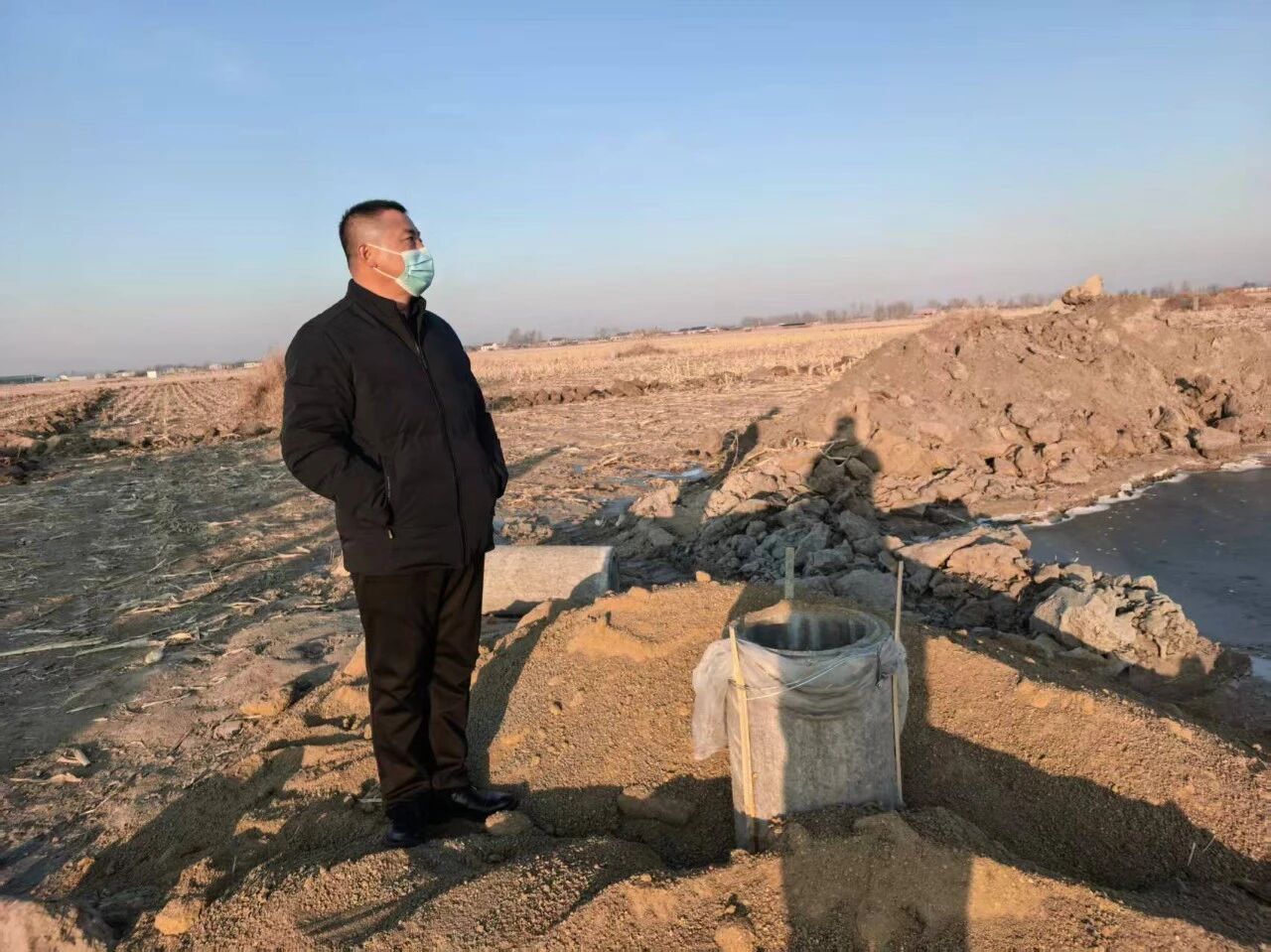 12月22日,架玛吐镇党委书记张志昌深入郭家窝堡村、大信屯村实地指导高标准农田项目建设进度
