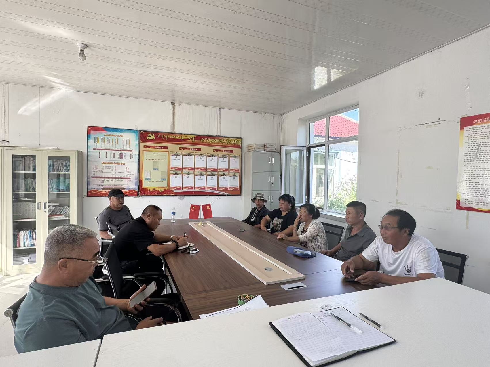 2025.7月18日哈日巴斯台嘎查党支部召开7月主题党日活动。参会党员7人。党支部书记孙百权主持集体学习会议。集中学习习近平生态文明思想纲要。