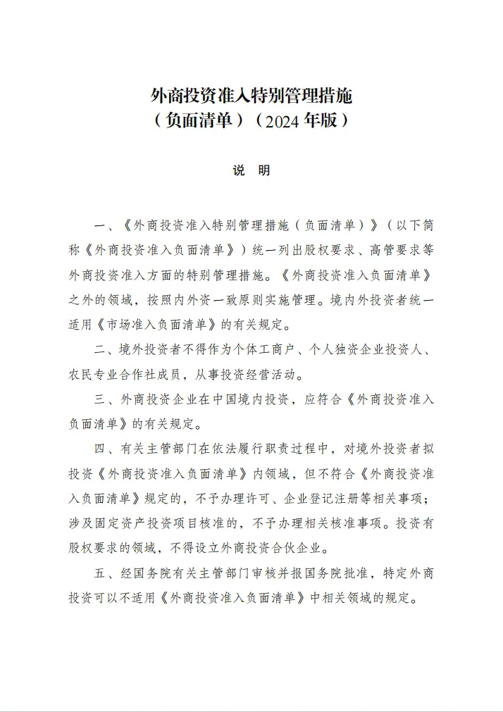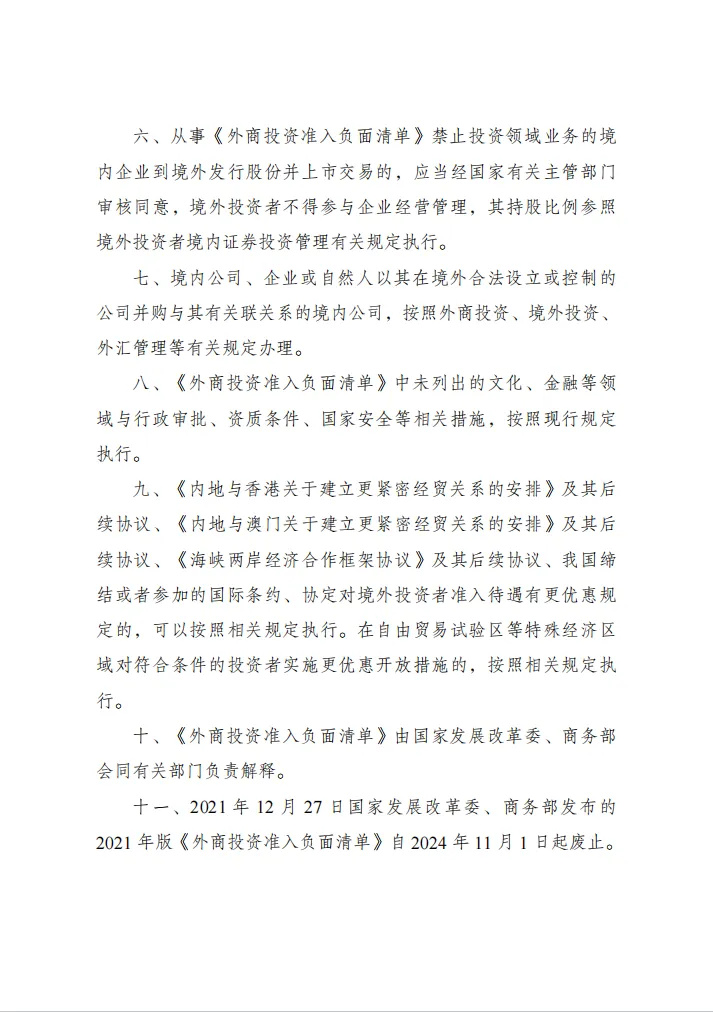 国家发展改革委 商务部令2024年第23号 外商投资准入特别管理措施(负面清单)(2024年版)