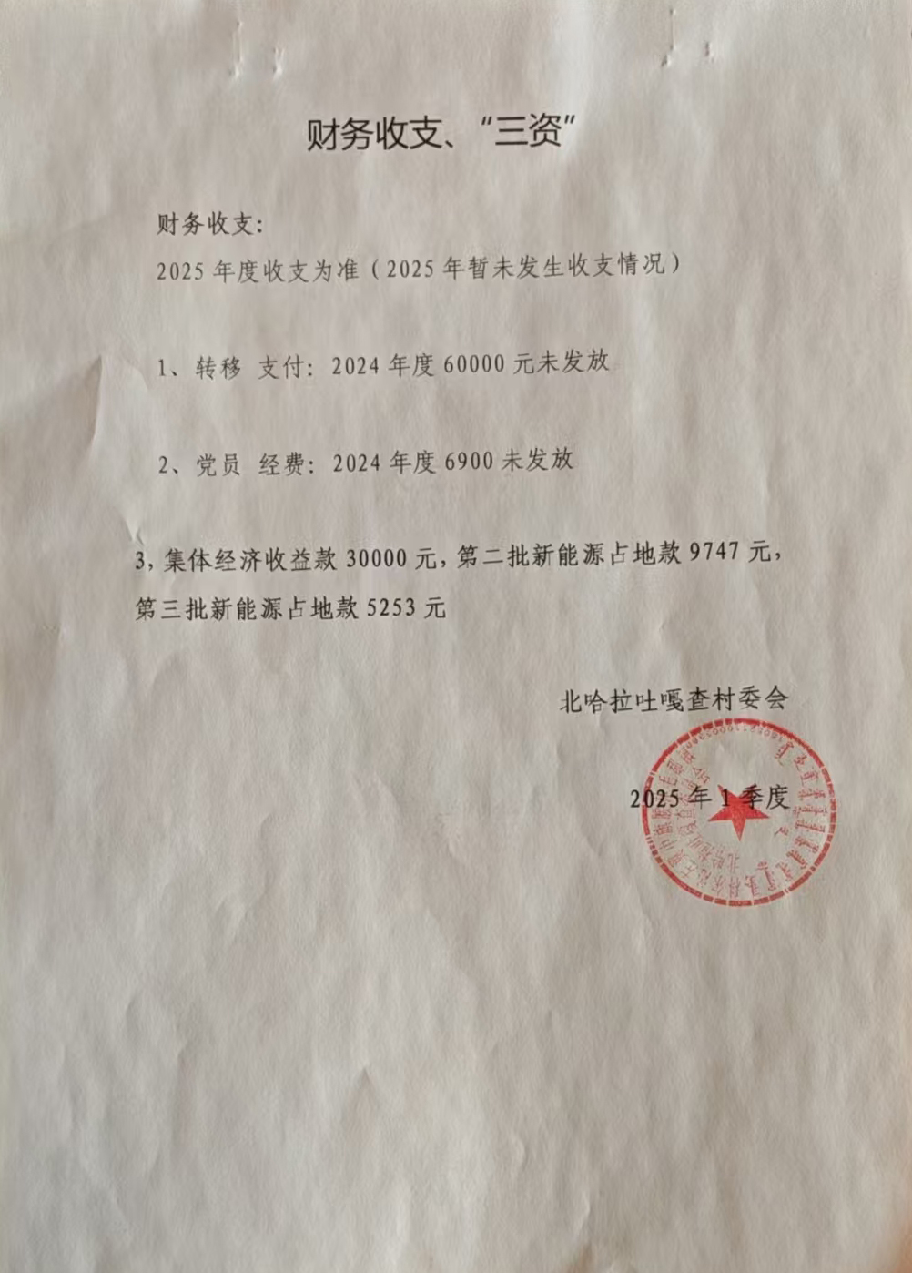 财务收支、“三资”