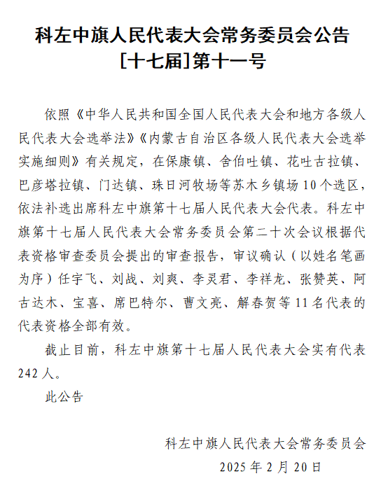科左中旗第十七届人大常委会第二十次会议公告、决定