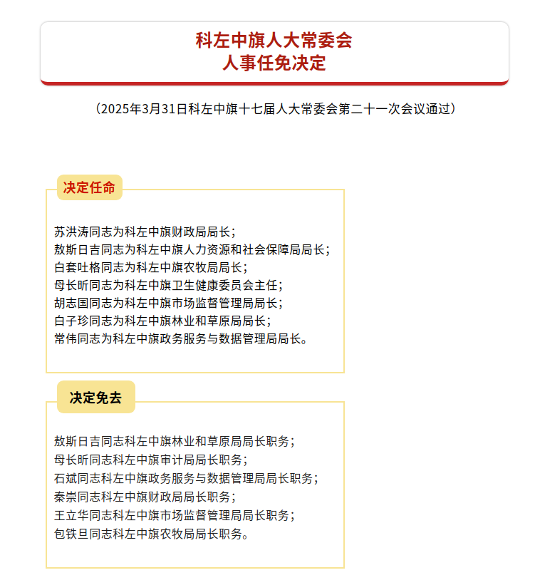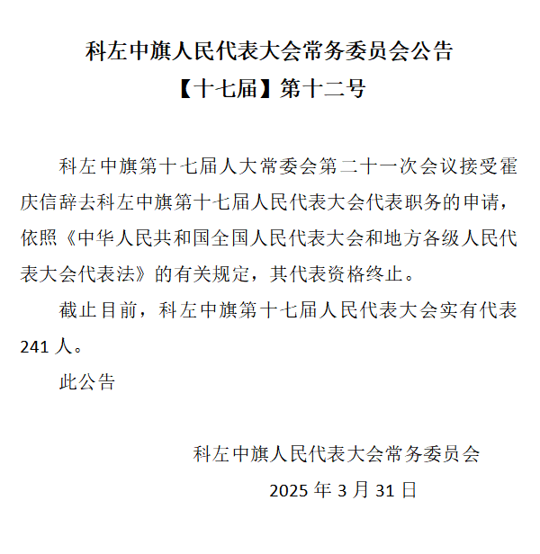科左中旗第十七届人大常委会第二十一次会议公告、决定