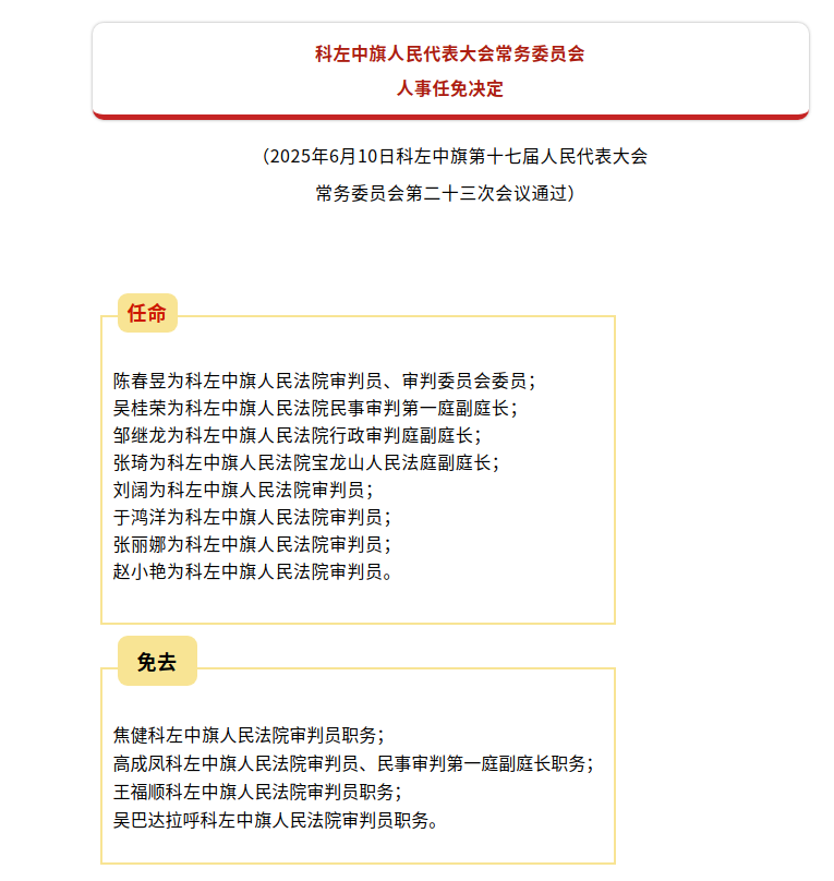 科左中旗第十七届人大常委会第二十三次会议公告、决定
