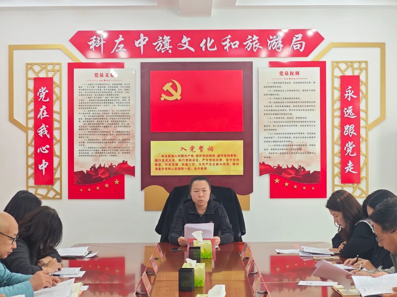 10月31日,科左中旗文化和旅游局召开党组理论中心组学习会,专题传达学习党的二十届四中全会精神,党组书记、局长杨俐慧主持会议,党组成员、局机关支部党员、各二级单位负责人及党务工作者参加会议。