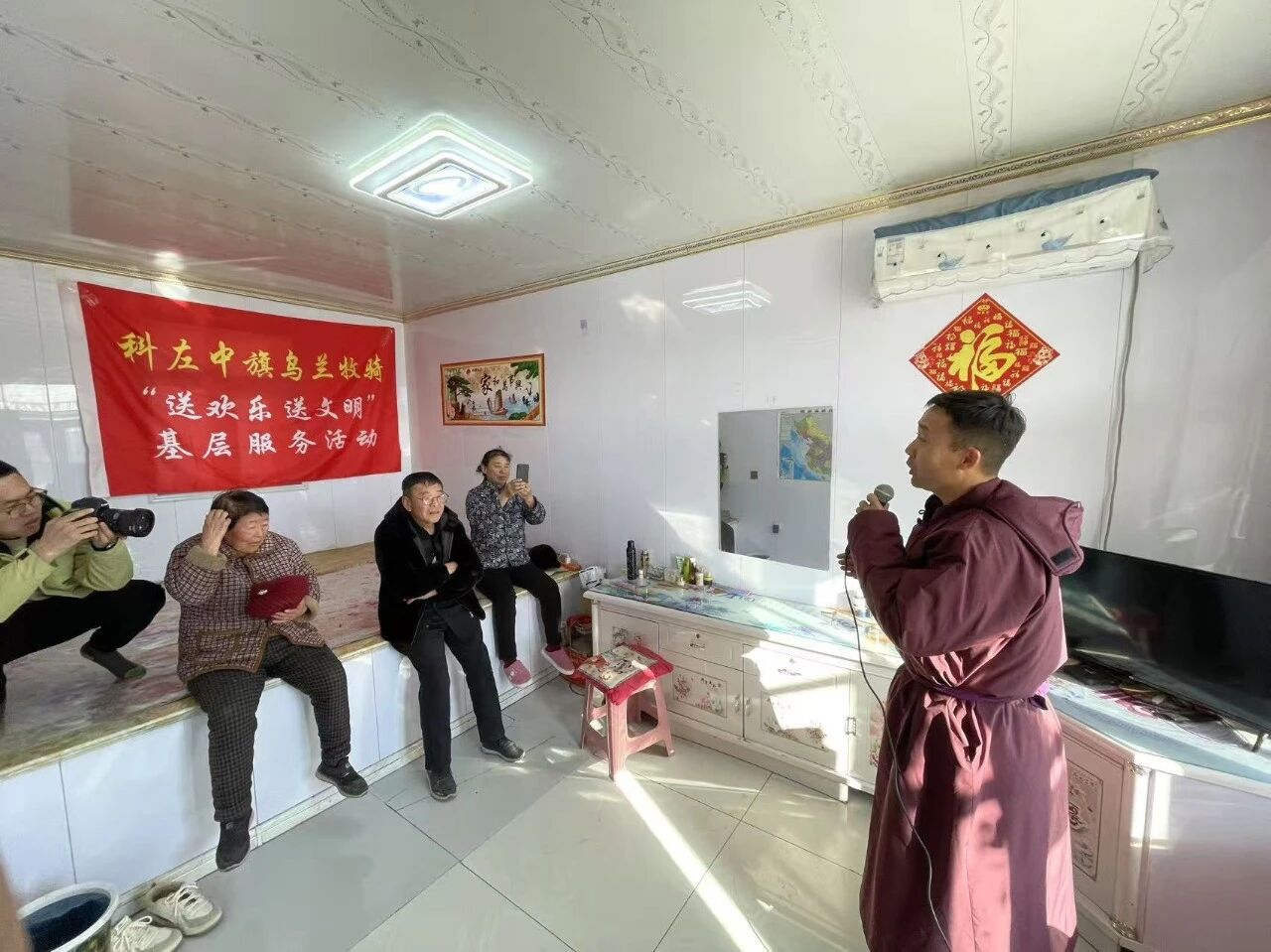 12 月 3 日至 4 日,科左中旗乌兰牧骑化身 “文艺宣讲小分队”,走进图布信苏木开展 “送欢乐 送文明” 基层服务活动。通过室内集中演出与入户精准服务相结合的方式,让党的政策理论伴着文艺馨香浸润群众心田。