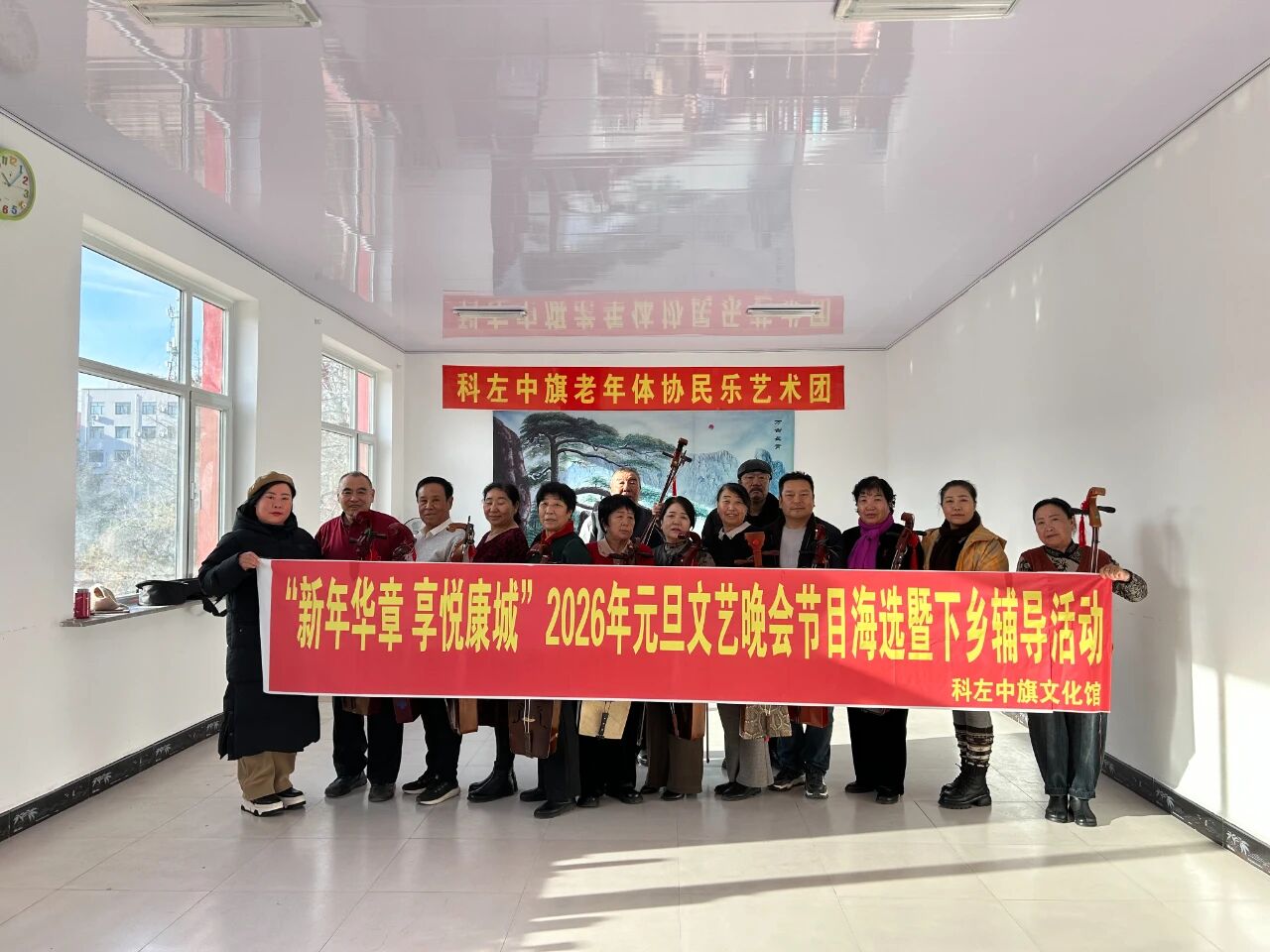 12 月 4 日,科左中旗文化馆在旗老干部活动中心成功举办 “新年华章 享悦康城 2026 年元旦文艺晚会节目海选暨下乡辅导活动”,专门为唱响未来艺术团、老年体协民乐艺术团、嘎达梅林广场舞蹈队提供专业化、精准化文艺培训,以实际行动推动公共文化服务向基层延伸。