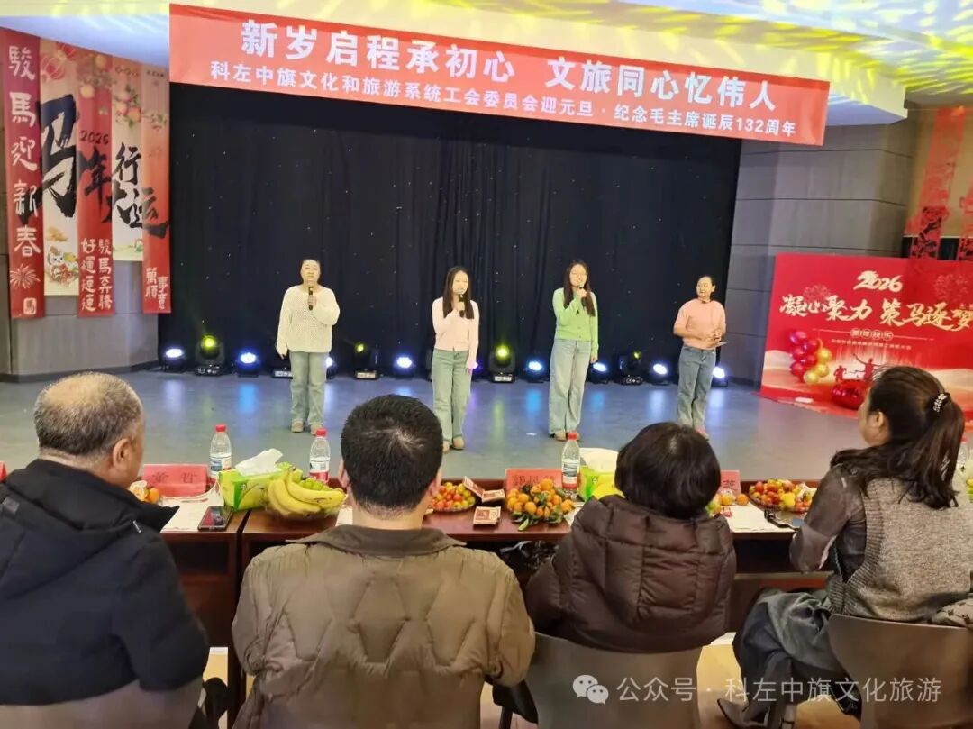 时光辗转,新元肇启。在2026元旦到来之际,为弘扬中华民族优秀传统文化,丰富职工的业余文化生活,12月30日,科左中旗文化和旅游系统举办2026元旦迎新文艺汇演,全体文旅人齐聚一堂,用歌声、舞姿与赤诚,辞旧迎新,凝聚奋进力量。