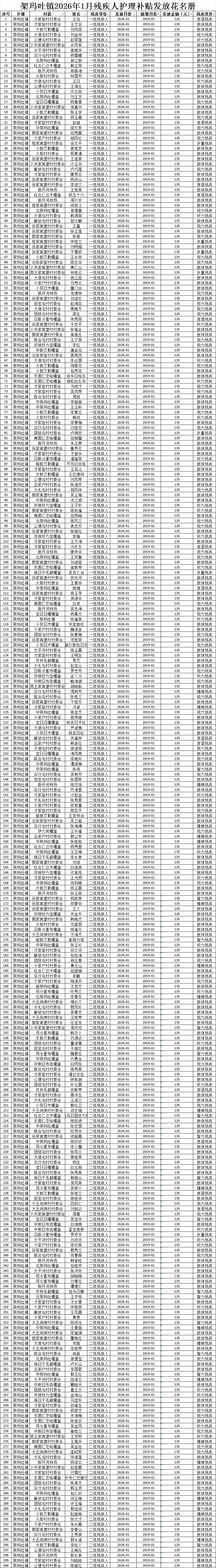 架玛吐镇2026年1月残疾人护理补贴发放花名册