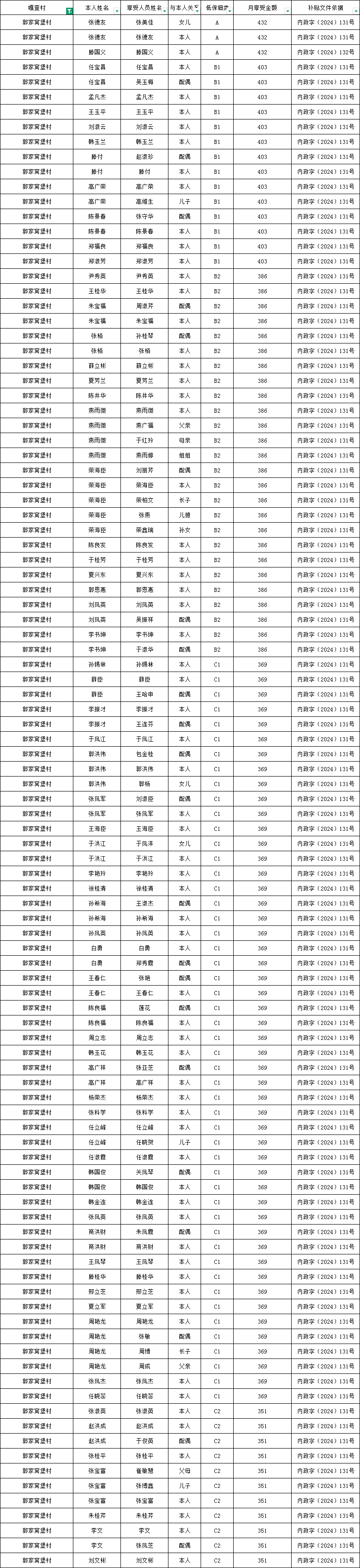 郭家窝堡村2026年1月农村低保资金发放花名册