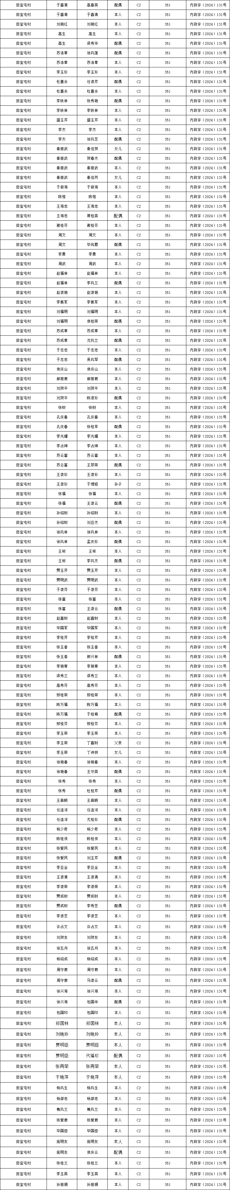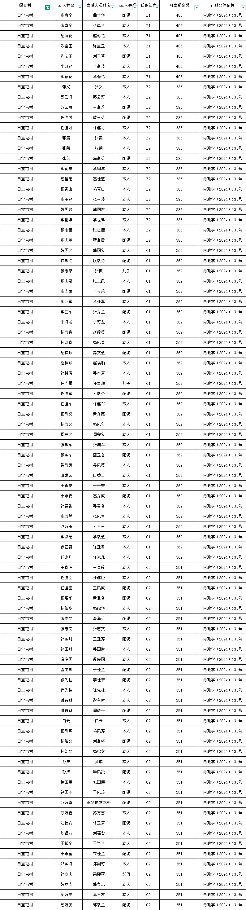田宝屯村2026年1月农村低保资金发放花名册