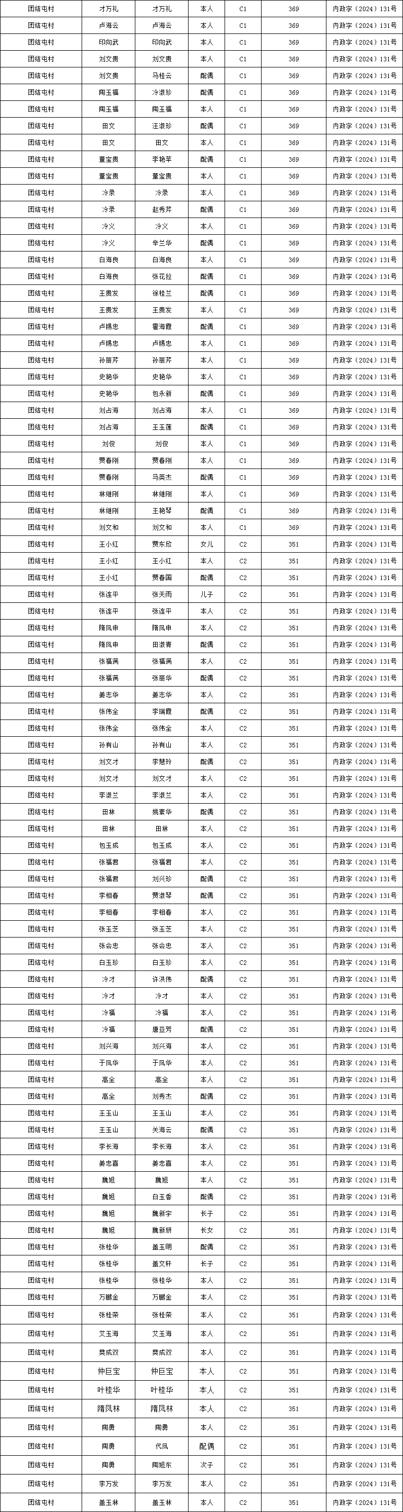 团结屯村2026年1月低保资金发放花名册