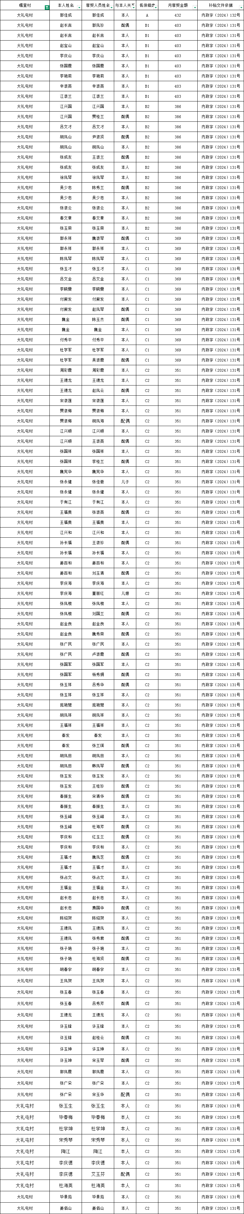 大礼屯村2026年2月份农村低保发放花名册