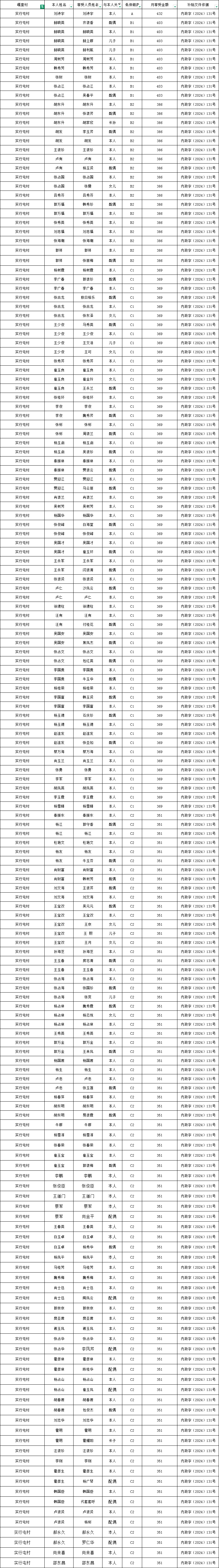 实行屯村2026年2月农村低保资金发放花名册