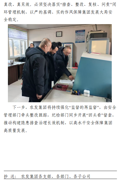 农发集团总经理韩志远带队开展安全隐患排查暨纪检督导专项检查