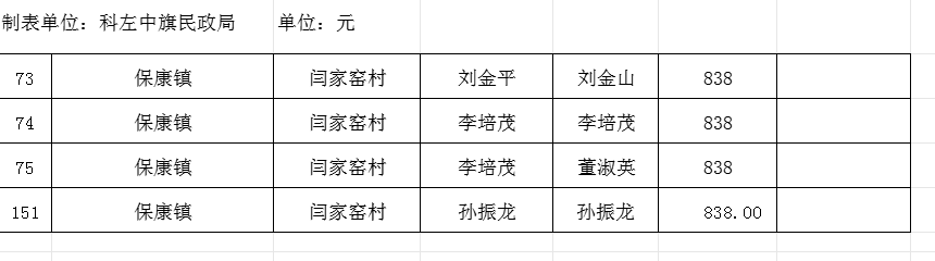 保康镇闫家窑村2026年2月份农村分散特困供养资金补助清册