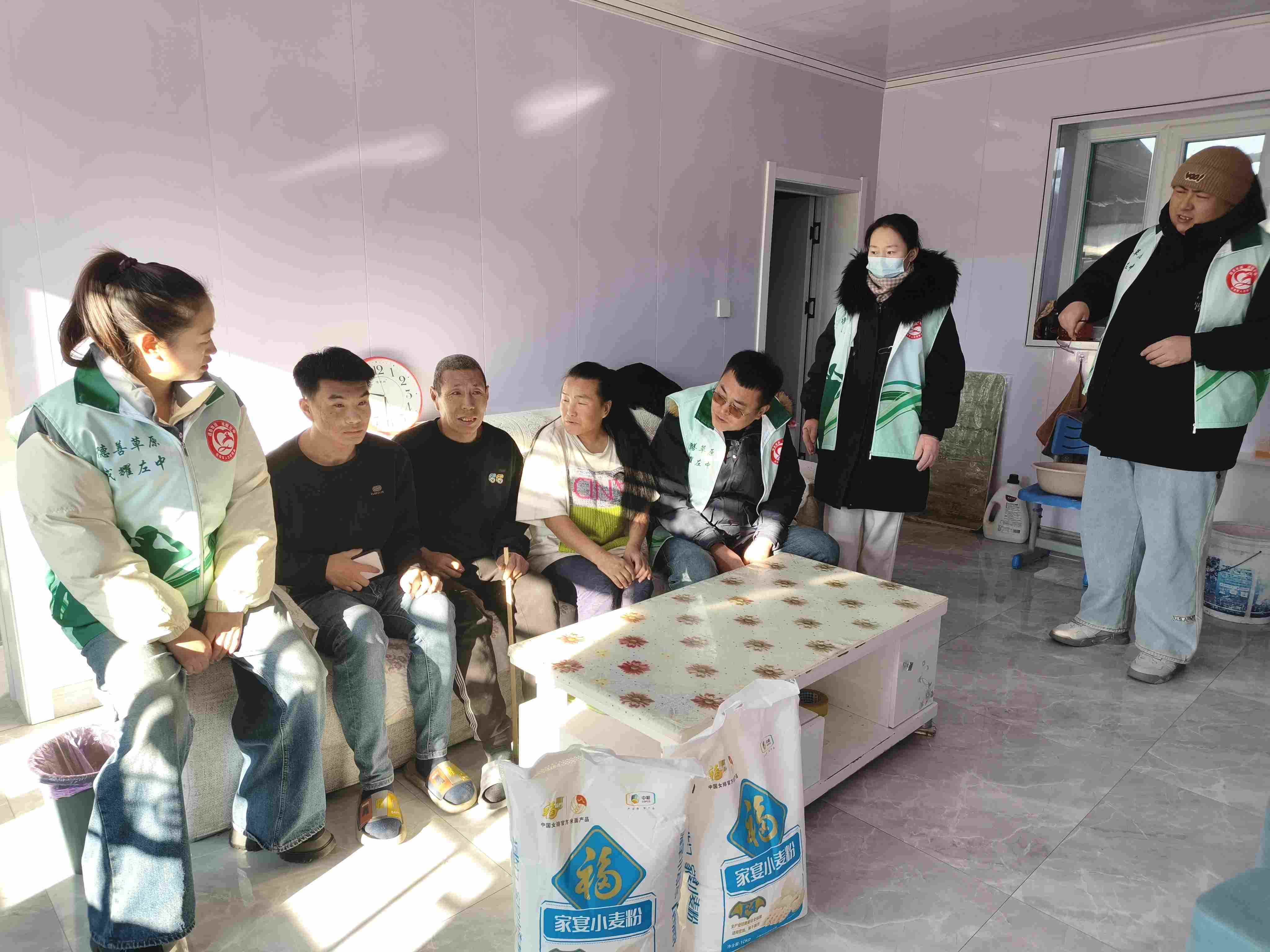 2月4日上午,红旗社区负责人带领社区退役军人代表及志愿者,身着统一的退役军人志愿者服装,携带慰问品前往辖区困难居民家中进行走访。活动中,志愿者们与居民亲切交谈,详细了解其家庭近况、生活困难和实际需求,并将满载关怀的两袋面粉等慰问品送至他们手中。走访过程温馨融洽,退役军人志愿者主动分享服务经验,鼓励居民乐观面对生活,充分展现了退役不褪色、奉献在社区的精神风貌,也将节日的祝福与社区的温暖切实送到了群众心坎上。
