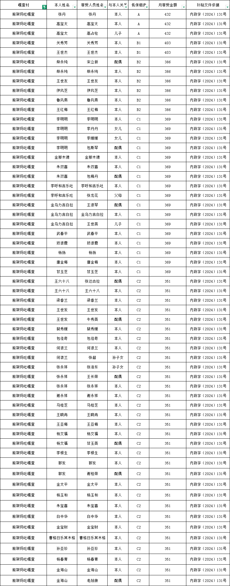 前架玛吐嘎查2026年3月农村低保资金发放花名册