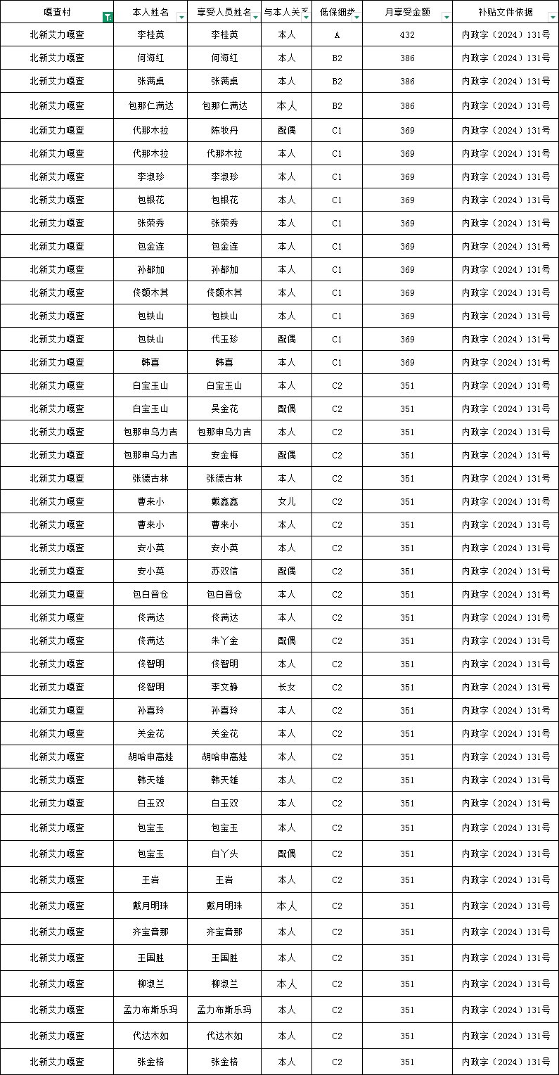 北新艾力嘎查2026年3月农村低保资金发放花名册