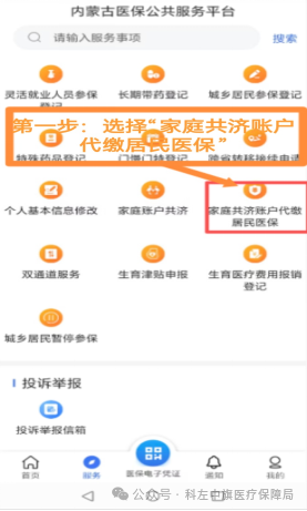 登录“内蒙古医保APP”或者“国家医保APP-内蒙古专区”,使用【家庭共济账号代缴居民医保】功能进行缴费。