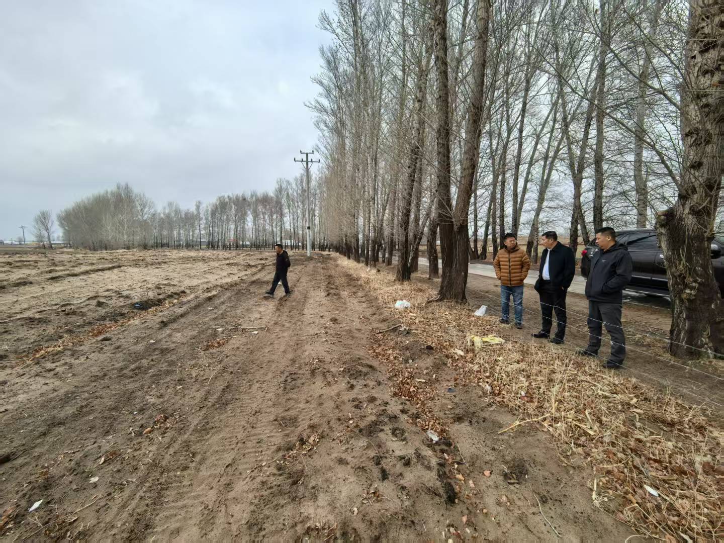 党委书记沈岩峰、政府苏木达韩康平、杜洋副苏木达到浩坦塔拉推进林地补植补造工作